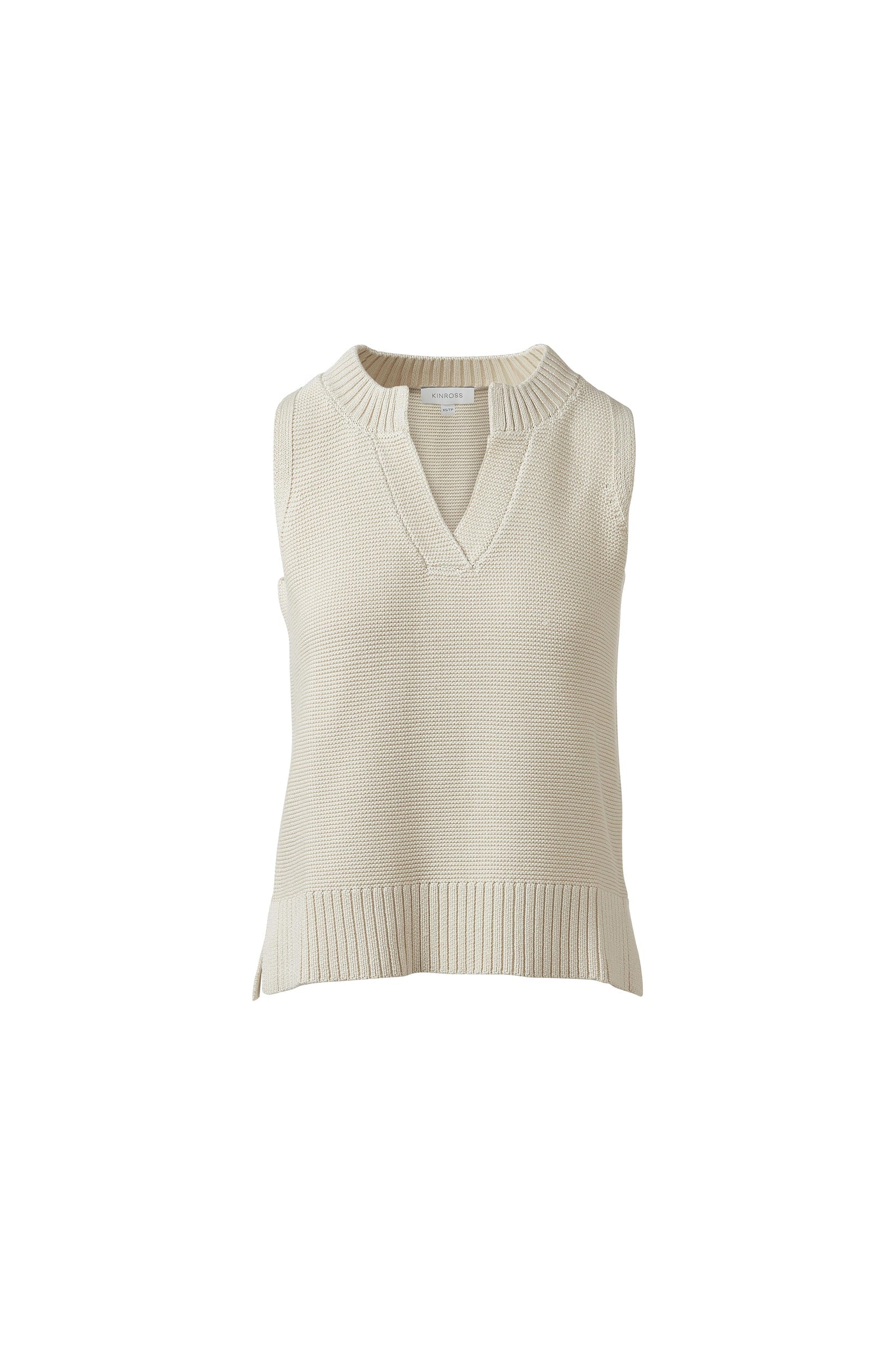 Crafted from a cotton and recycled polyester tape yarn blend, this sleeveless crew combines modern styling with lightweight comfort. The split neck detail lends effortless sophistication for springtime dressing.
