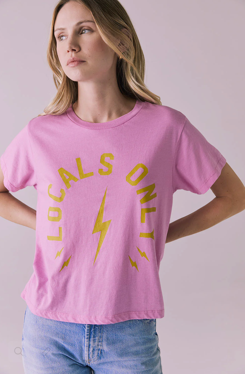 Bring bold charm to your closet with our Locals Only Bolts tee.