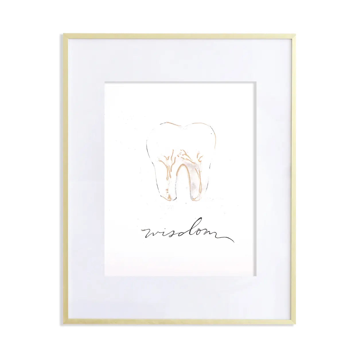 8x10 print on medium weight linen paper with added metallic gold accents. Packaged in a plastic sleeve with a cardboard backer.
